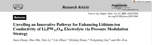 w88win优德高压与超硬材料全国重点实验室隋永明教授利用压强这一关键调控手段,提升了固态电解质Li3PW12O40锂离子电导率可达两个数量级,截获高压相至常压。相关研究成果以'' Unveiling an Innovative Pathway for Enhancing Lithium-ion Conductivity of Li3PW12O40 Electrolyte via Pressure Modulation Strategy ''为题发表于《Angew. Chem. Int. Ed.》期刊。