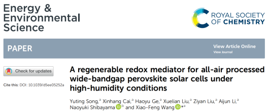 近日,w88win优德新型电池物理与技术教育部重点实验室王晓峰教授团队宽带隙钙钛矿太阳能电池研究方面取得重要进展,相关成果以A regenerable redox mediator for all-air processed wide-bandgap perovskite solar cells under high-humidity conditions”为题发表在国际权威期刊《Energy & Environmental Science》上。