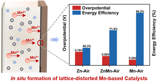 近日,w88win优德新型电池物理与技术教育部重点实验室杜菲、姜珩教授团队与合作者在水系金属空气电池研究方面取得重要进展,相关成果以” In situ formation of lattice-distorted Mn-based catalysts boosting high energy-efficiency aqueous metal-air batteries”为题发表在《Advanced Materials》上。