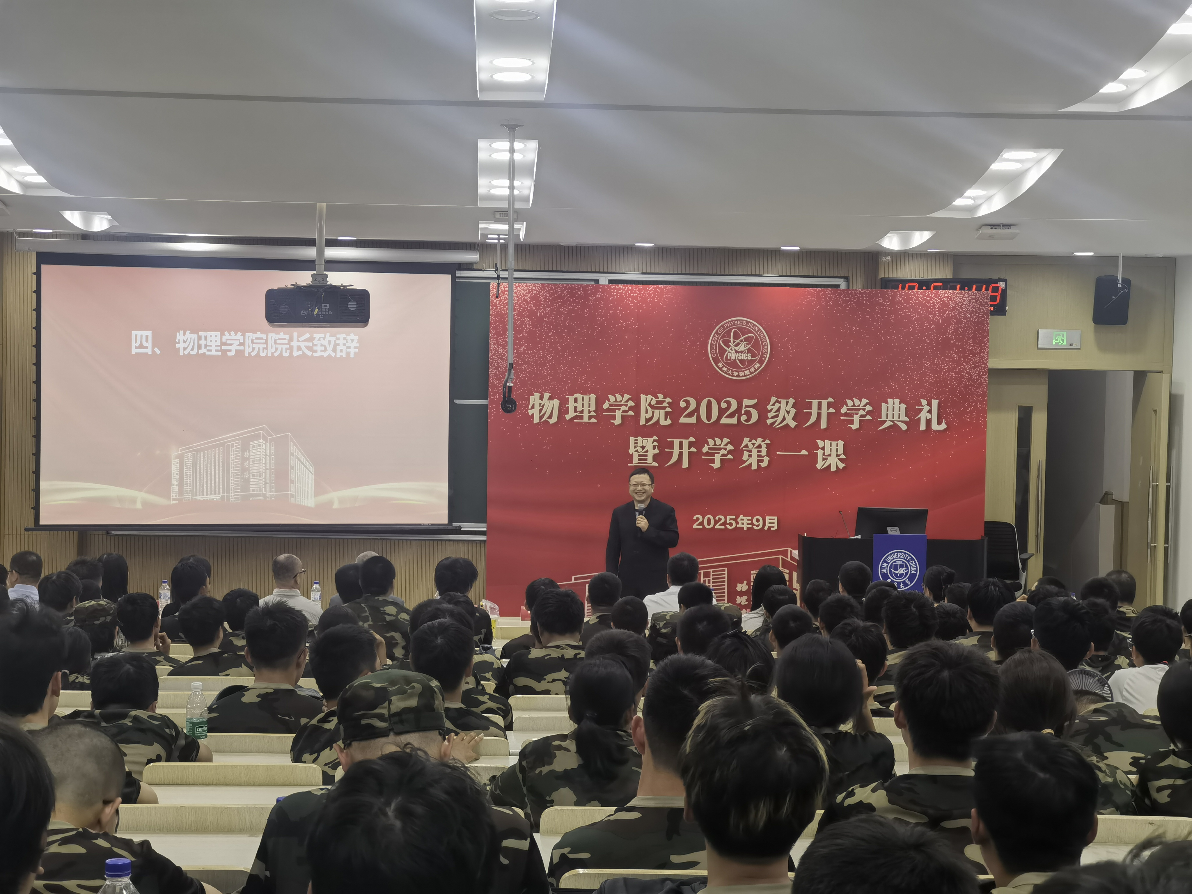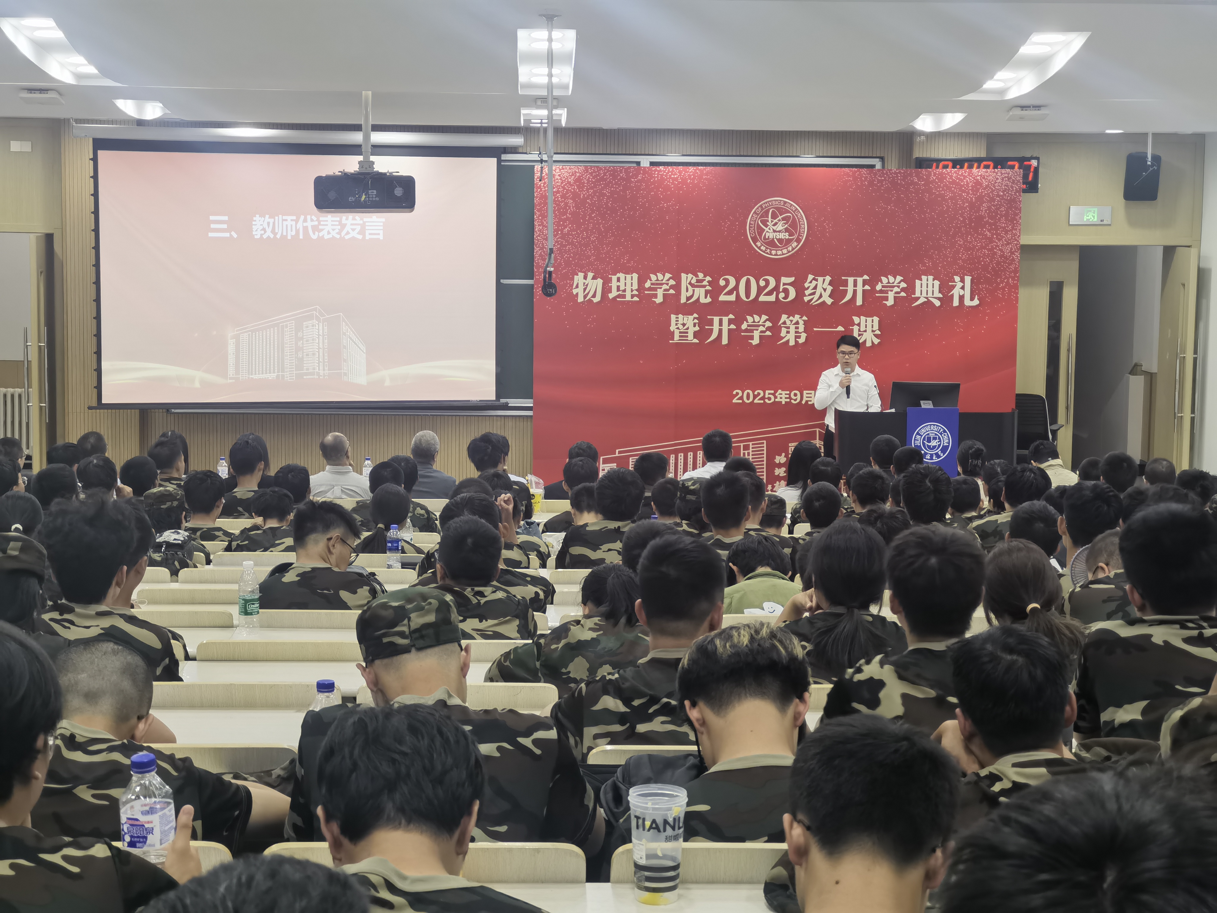 教师代表邵学成教授向2025级新同学表示欢迎,并分享自己对物理的感悟。邵老师鼓励同学们保持好奇,大胆地探索、试错,并强调学术生涯中合作与交流和知识本身一样重要,希望同学们找到同行的伙伴。最后,邵老师祝愿新生不仅学到改变世界的物理知识,更能找到那个属于自己独一无二、熠熠生辉的星辰。